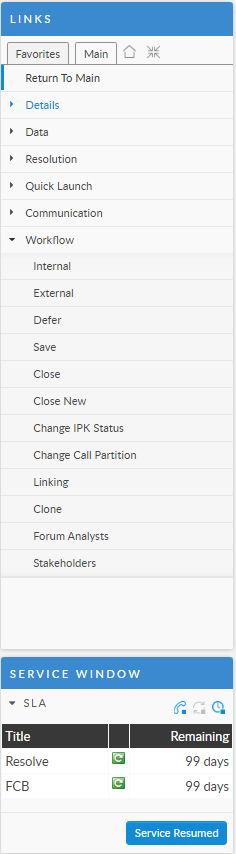 You can use the Call Details window to specify and view the details of a call, and also perform actions on it such as forwarding to another analyst for resolution.