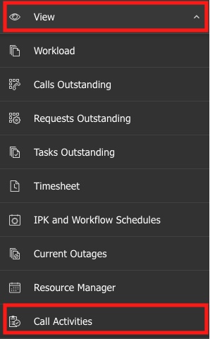 If you do not have **Call Activities** as part of your ***View*** menu, you have not been granted access to view them.  Please contact your ASM System Administrator for assistance or to be placed into the correct RBAC groups to see and interact with **Call Activities**.