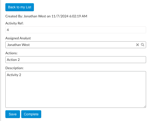 To complete a call activity, all the Analyst needs to do is click "Complete".  No other action is required.