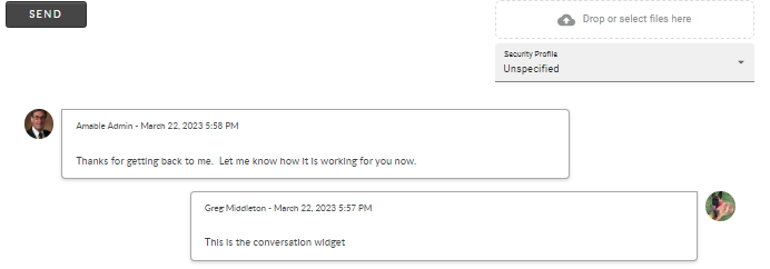 * Click the Conversation Section and view the details.  It is located just below the **Send** button in the widget.