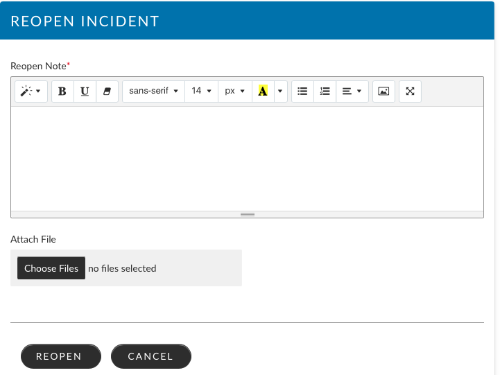 3. Enter a note that explains why this ticket needs to be reopened and then click "**Reopen**".