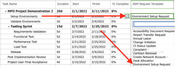 This integration provides bidirectional integration between MPO and the ASM application to generate and sync tasks and work packages for the Project and Program Management activities of your organization. It has been developed and is provided with your “Out of the Box” (OOB) Kratos (and later) version of ASM.