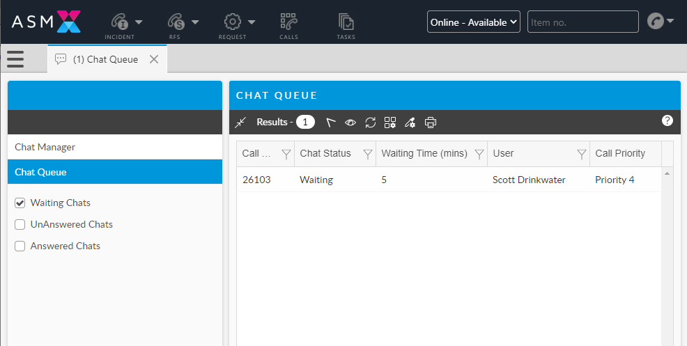 A new chat is started where the subject is your Call number