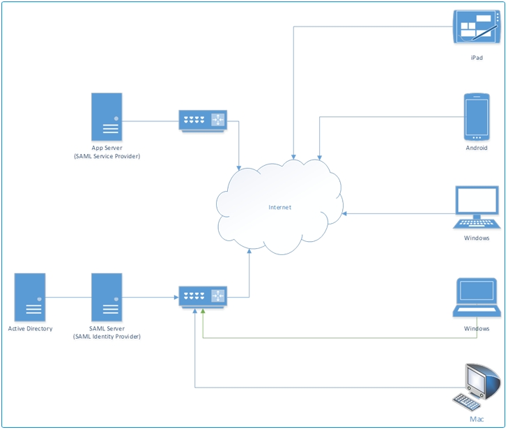 The SAML Identity Provider may identify the user using a username and password, windows authentication (subject to the topological restrictions above) or some other means (client certificates, multi factor, etc). The SAML Identity Provider may also set an authentication cookie which it will use to “remember” the user.