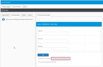 The Forgot Password settings were maintained in the Self Service Settings window prior to this release. These are now managed in Designer by configuring the "Click here for Password Reminder" label in the Portal Screens Login screen.