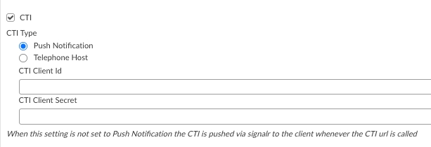 When your CTI is not set to "Push" the CTI is pushed via SignalR to the client whenever the CTI URL is called.