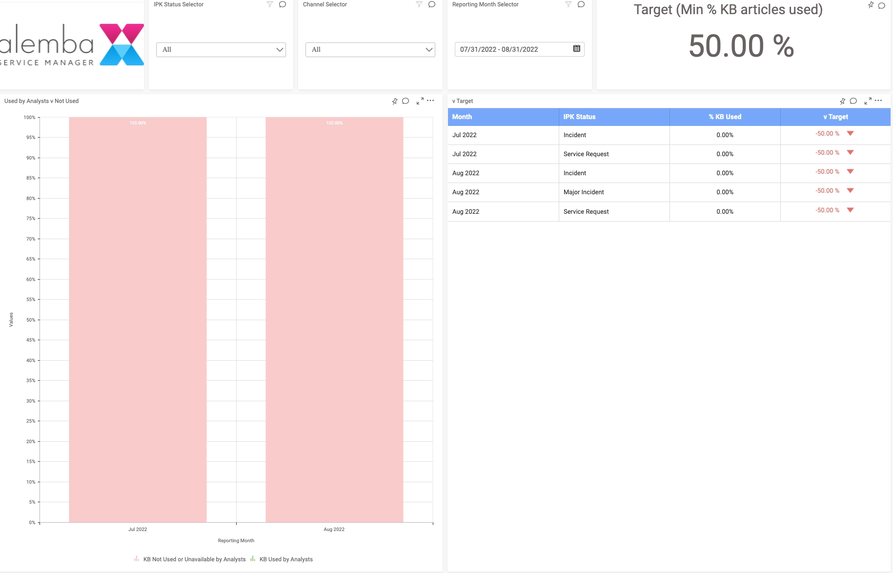 The target percentage is configured through the datasource connection and is a SyncFusion function entitled Target set with a default value of 50%. Knowledge articles must be set to published for them to appear on the self service portal which allows knowledge to be marked as ‘that was useful’ and enables customer centric call closure. This uses the same datasource as 8.28