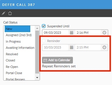 Single Reminders enable Analysts to set a one-off reminder email for themselves while deferring or forwarding a call, request or task.