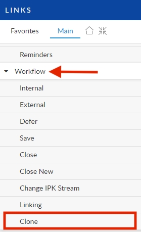 In the explorer pane, expand Workflow, then select Clone. The Clone dialog box appears.