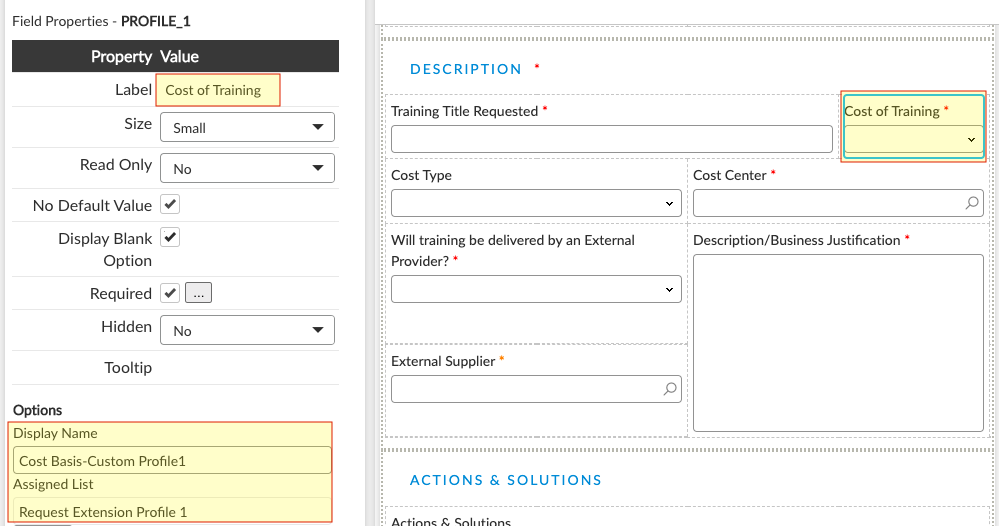 In Screen Designer, they renamed the field "Custom Profile 1" to "Cost of Training" in the Field Label.