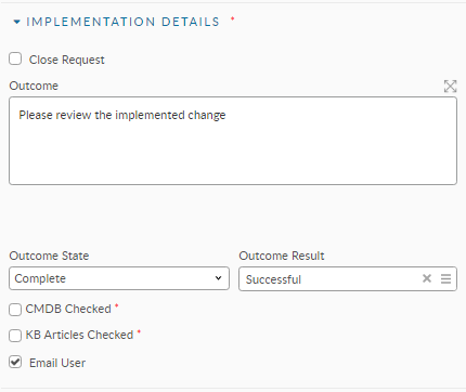 Closure tasks mark the end of a request. A Closure task can be used to set the implementation reason and request status for a request.