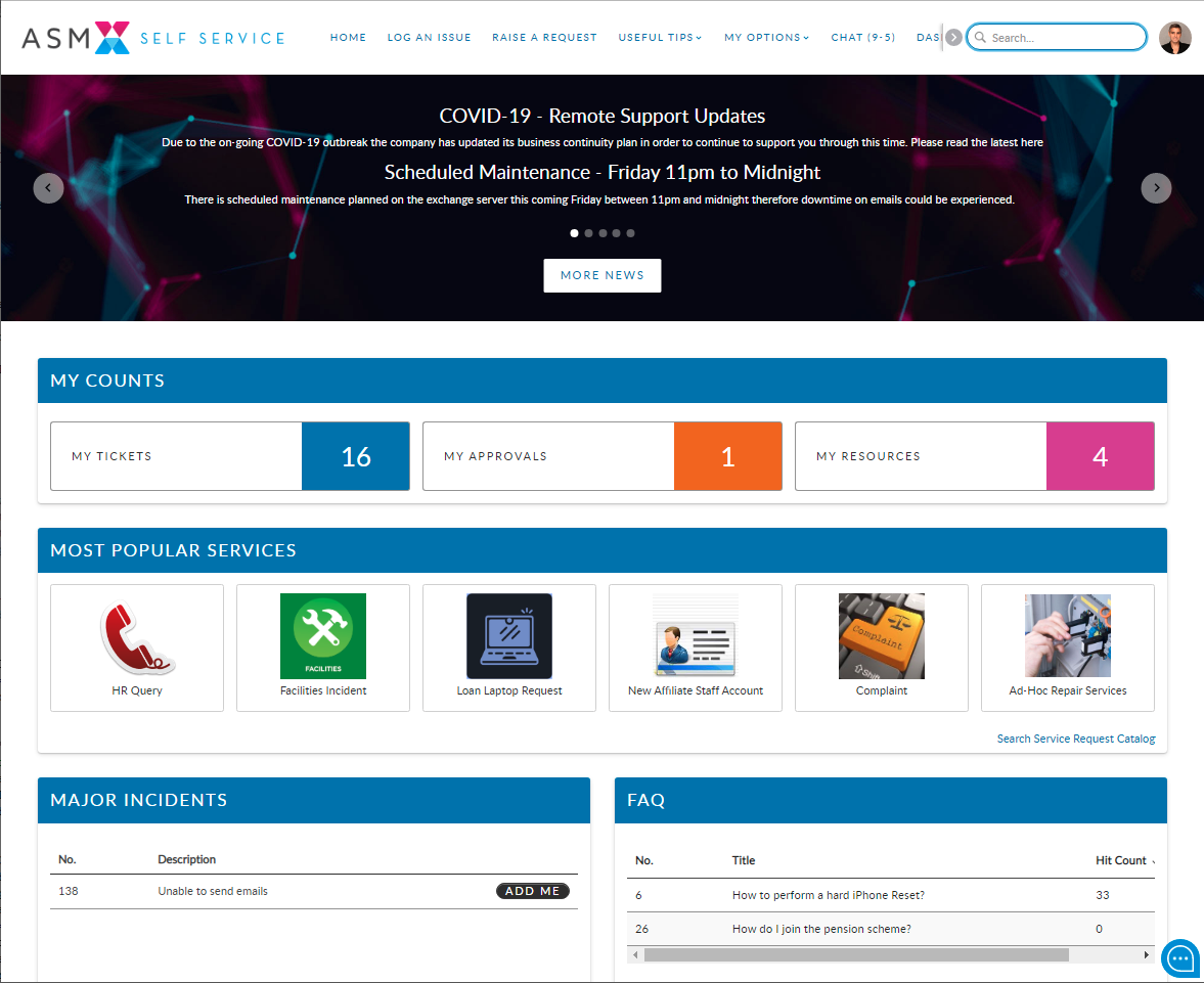 It is also used by service desk analysts processing calls and requests on behalf of users.