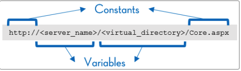 URLs are made up of constant and variable parameters. Some parameters vary from system to system while others are static values. The following convention has been used to denote parameters: