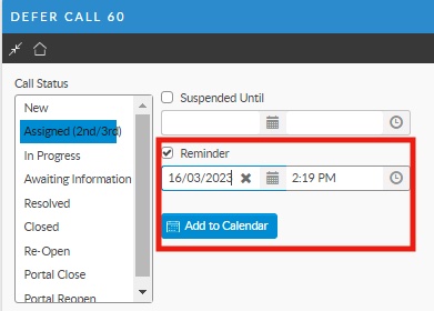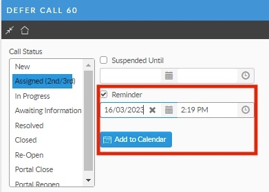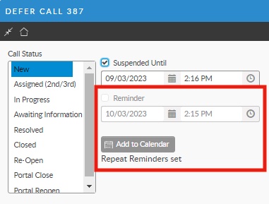 Single Reminders enable Analysts to set a one-off reminder email for themselves while deferring or forwarding a call, request or task.