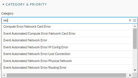 You can complete a number of fields using the search function. In any field with a magnifying glass in it, simply start typing and the system will dynamically match the data. If configured for example, you can start typing a user ID in the User field and the friendly name will appear, or the serial number in the CI field and the correct CI will appear.